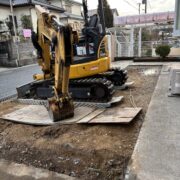 こんにちは、前田です。 この仕事をさせていただいていると、不思議なことに同じジャンルの仕事が続くもので、今回も別件の外構工事をお伝えします。 ご覧の通り、駐車場横からお庭が広いのですが、植栽スペースとブロック塀で大きくスペースをとっています。 ここからどうするかというと…まずはさらっとさせて こちらに花壇をガス配管も移動させ前からの絵です。型枠を少々そう、土間打ちです! こちらも広々…