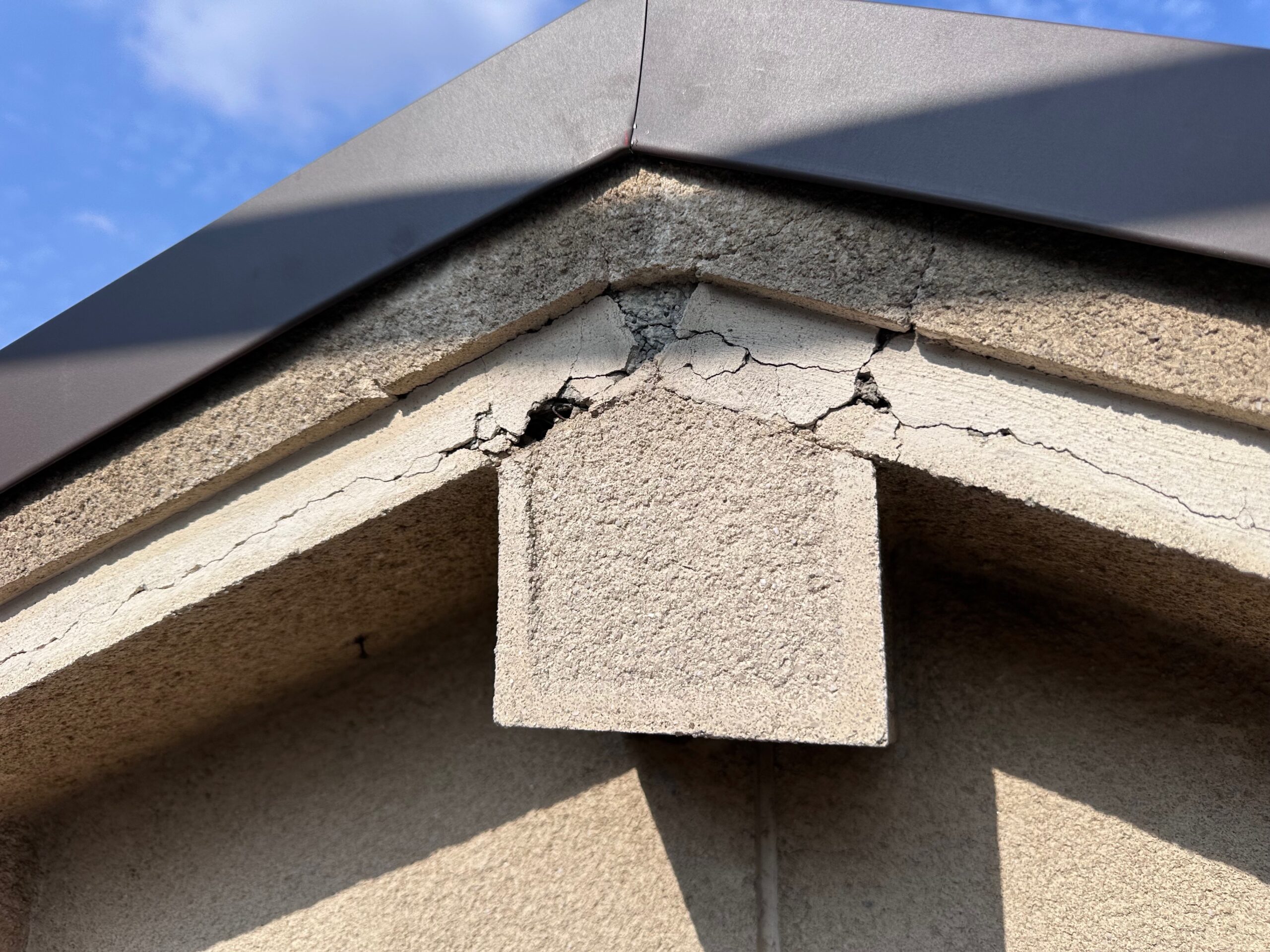 現状かき落としという塗りの壁だったのですが、震災後ノーメンテでしたので、クラックが多く入ってしまっています。