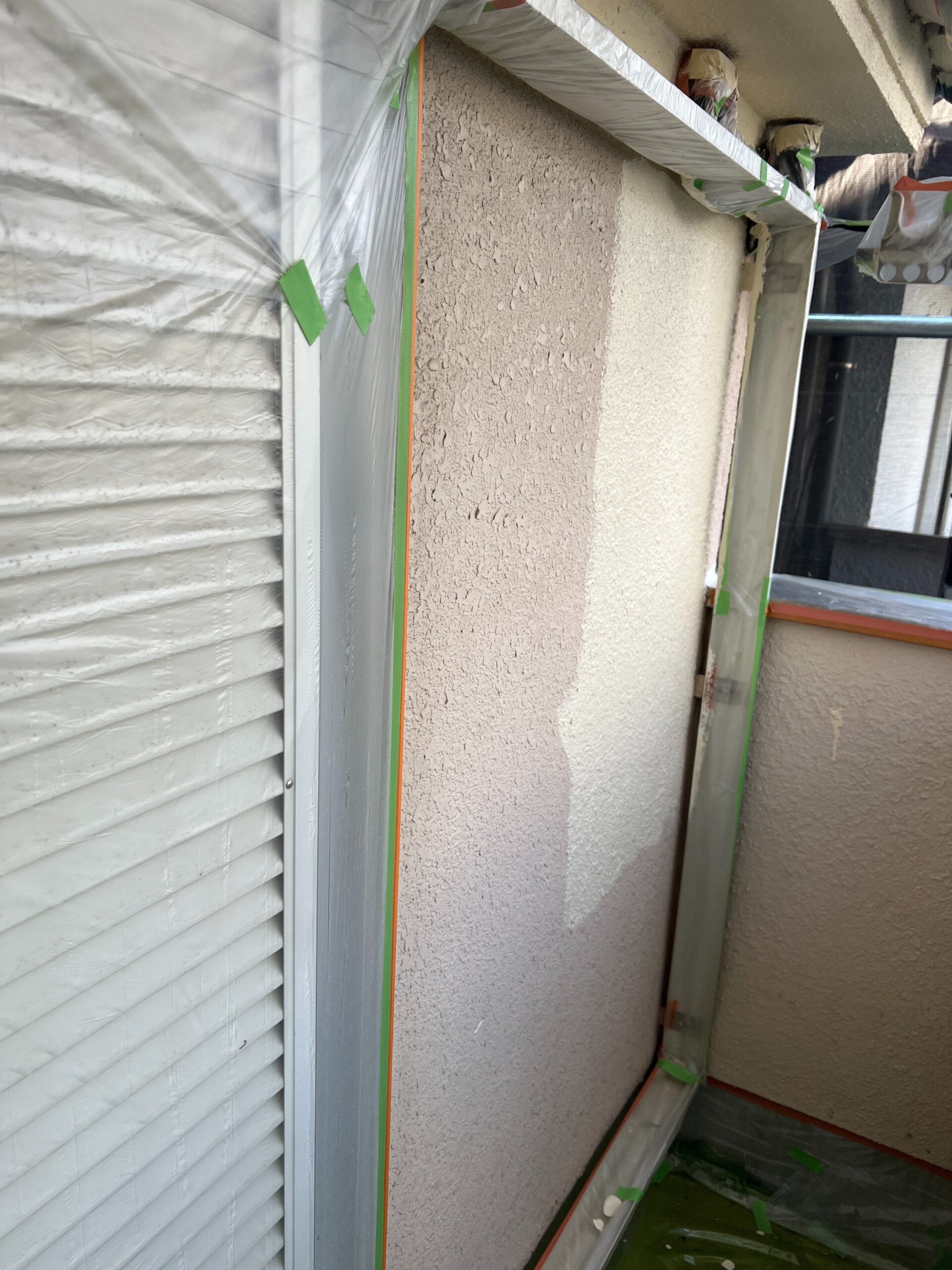 お施主さんとの相談の結果、クラック補修を行い、アミコートという塗料で補強も行うことで壁の強度も持たせることになりました。
