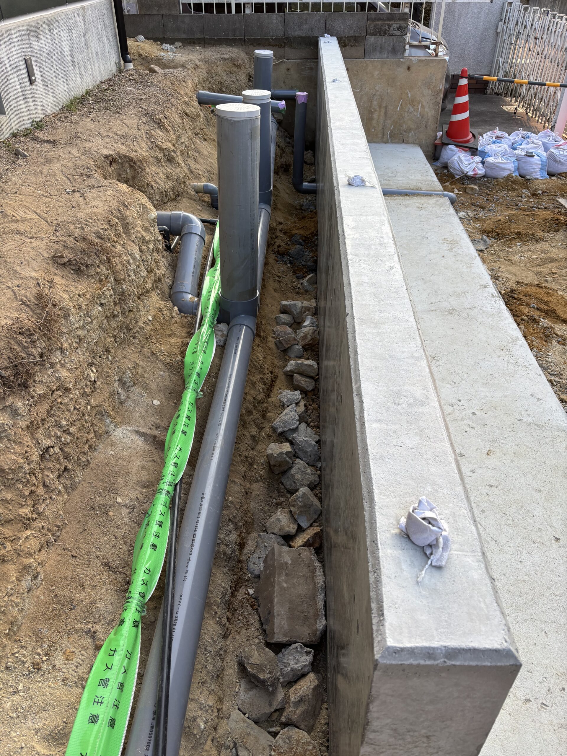 裏にはライフラインの配管を通していきます。