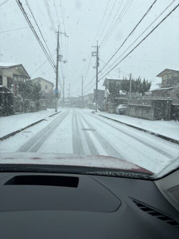 今年は役に立ちました。お昼にはあっという間に雪が降り積もり、会社を少し離れるとこんな景色に。