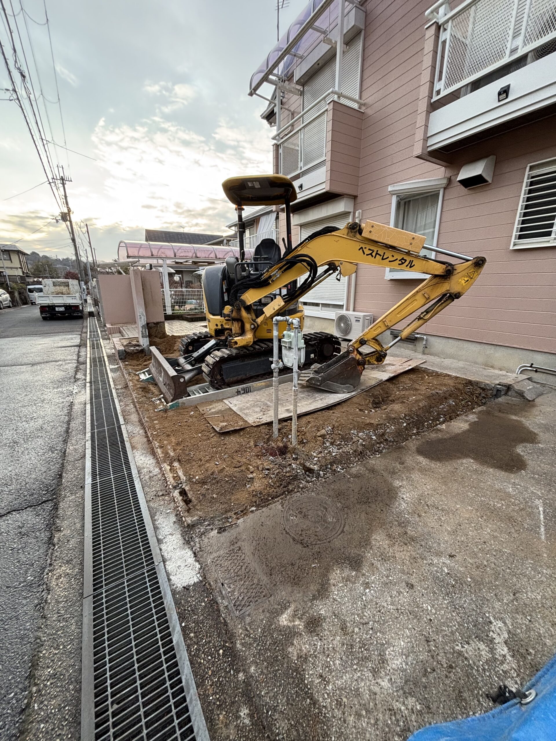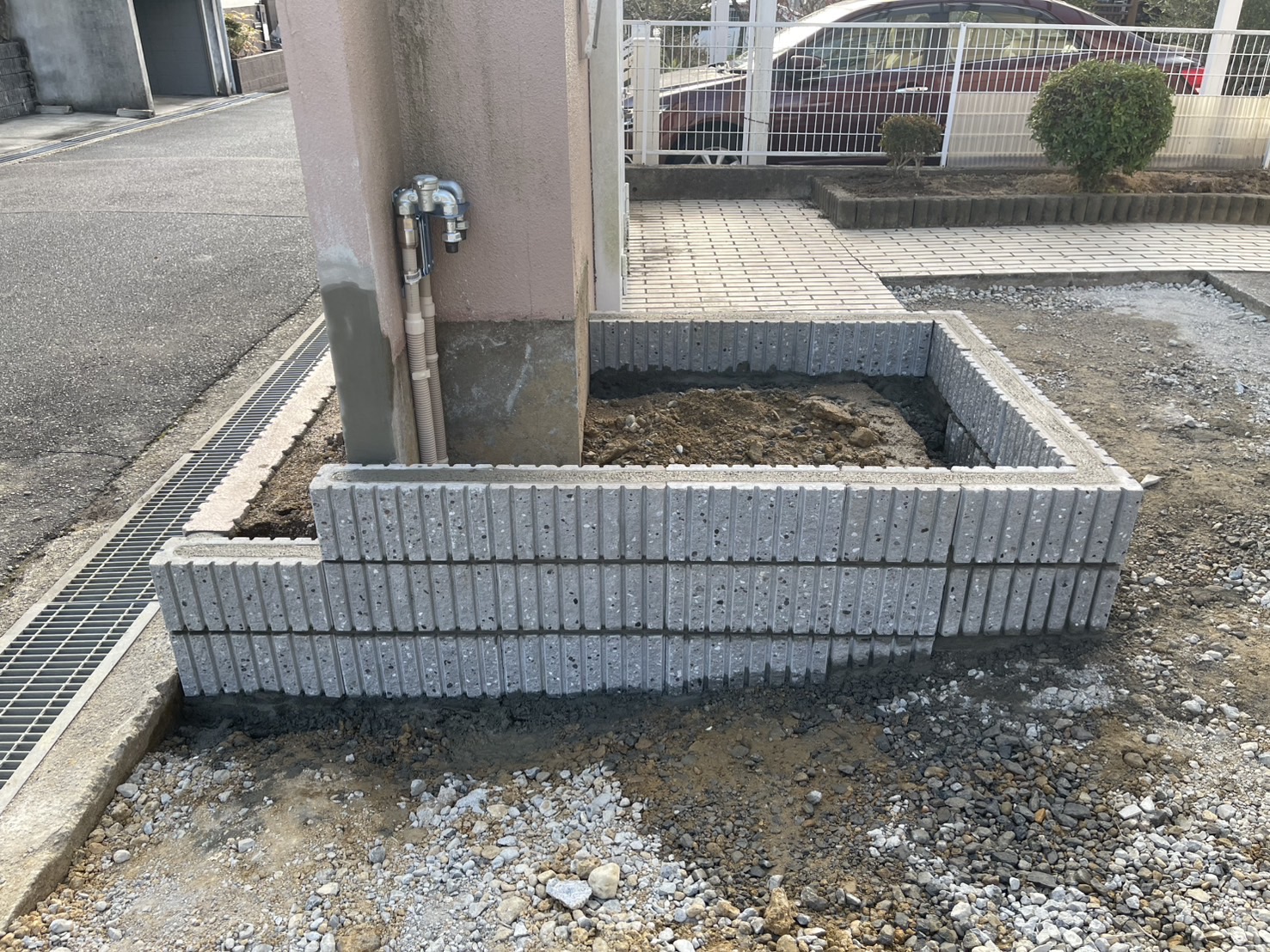 この仕事をさせていただいていると、不思議なことに同じジャンルの仕事が続くもので、今回も別件の外構工事をお伝えします。