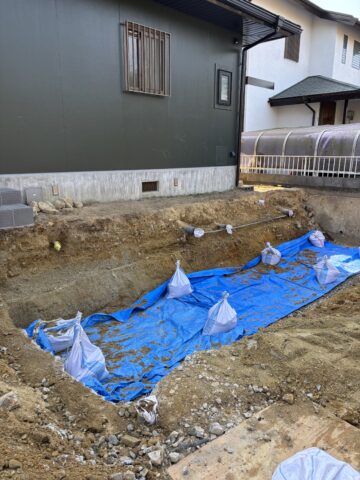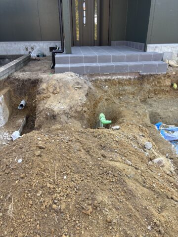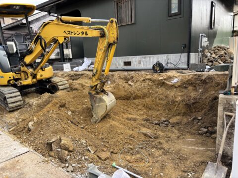 ここまでで着工から約1週間、この後もライフラインの繋ぎ込み等を行い、土間打ちまですすめてまいります!